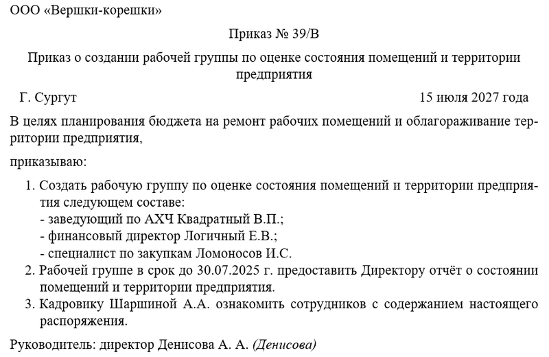 Приказ о создании рабочей группы по оценке состояния помещений и территории предприятия - это административный документ, санкционирующий формирование временного коллектива для комплексной инспекции зданий, сооружений и прилегающих площадей. В рамках настоящего материала мы рассмотрим назначение группы, суть оценки имущества, аспекты мотивации, роль приказа и правила его оформления.