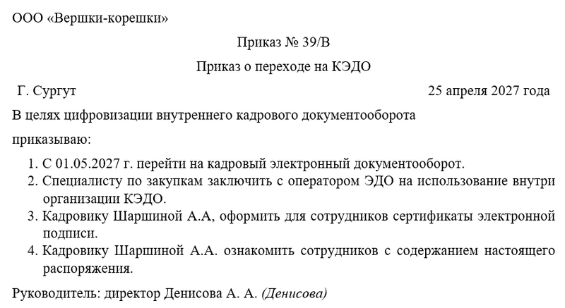 Роль приказа директора в переходе на КЭДО