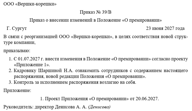 Инструкция по оформлению приказа о внесении изменений