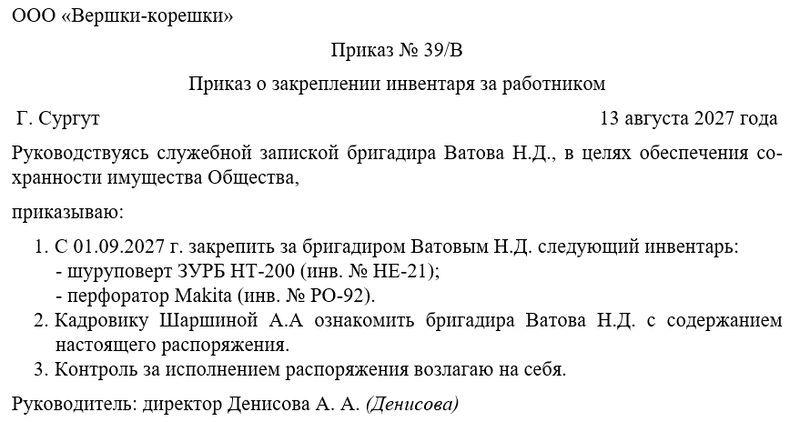 Приказ о закреплении инвентаря за работником — это внутренний распорядительный документ, фиксирующий передачу определённых материальных ценностей сотруднику для использования в служебных целях. В рамках настоящего материала мы рассмотрим назначение такого приказа, понятие закрепления имущества, задачи документа, круг участников процесса, правовые последствия передачи инвентаря и общие рекомендации по оформлению.