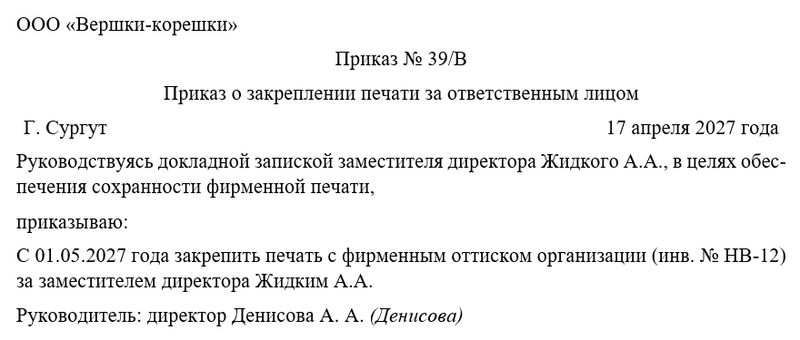 Роль распорядительного документа в закреплении печати