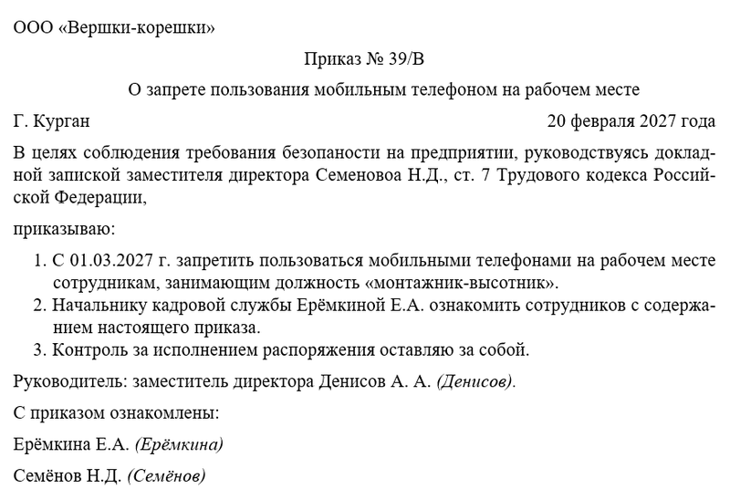 Скачать в КонсультантПлюсБесплатный доступ к документуОбразец приказа о запрете пользования мобильным телефоном на рабочем месте