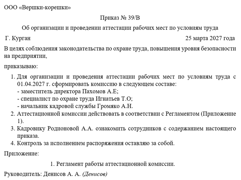 Бланк приказа об организации и проведении аттестации рабочих мест по условиям труда