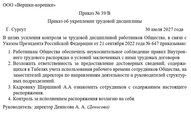 Приказ об укреплении дисциплины выполняет несколько важных функций: