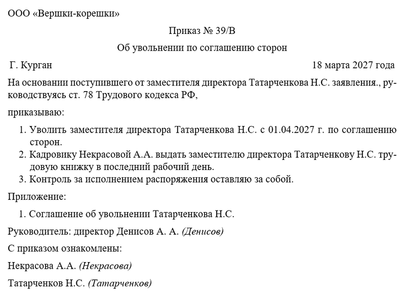 Приказ об увольнении по соглашению сторон – это распорядительный документ, в соответствии с которым руководитель организации и её сотрудник могут принять обоюдное решение относительно расторжения заключенного трудового договора. Сегодня мы разберем, какие существуют пути для разрыва трудовых связей, причем здесь распоряжение руководителя и как правильно его оформить.